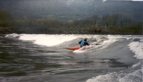 L'endroit le plus intéressant est situé le long de la rive droite. Un contre-courant assez long permet de remonter facilement jusqu'au départ de la vague. Assez plate le long de la rive, la vague devient plus raide au fur et à mesure que l'on s'éloigne de la berge et qu'on approche de la partie qui déferle